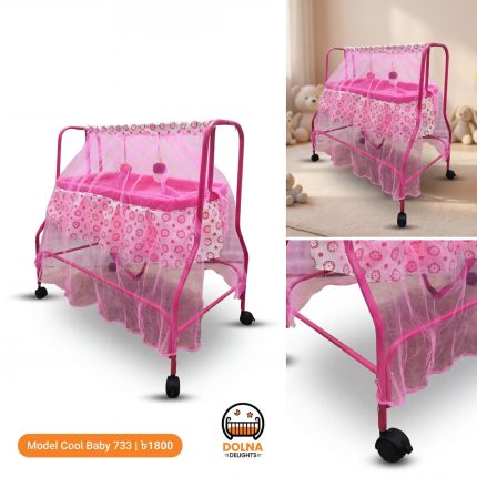 Cool Baby 733 ♦মেটারিয়াল = এম এস পাইপ ♦চাকা ৪টা (২টা লক +২ টা লক ছাড়া) ♦ বেবিদের সুরক্ষার জন্য মশারী দেওয়া হবে। ♦২ টা ঝুলন্ত খেলনা পুতুল হবে ♦ ২০+ কেজি ওজন ধারন করতে পারবে। ♦০-২ বছর ব্যবহার করা যাবে ♦সাইজ ৩ফুট/৪ ফুট ♦খাচার সাইজ ২৪ / ৩০ ইঞ্চি ♦খাচা কিভাবে তৈরী-উপরে পাইপ দিয়ে কাপড় দিয়ে তৈরী +ভিতরে হার্ডবোর্ড দেওয়া বাবু শোয়ার জন্য। কালার হবে দুইটা গোলাপি রঙের এবং নীল রঙের