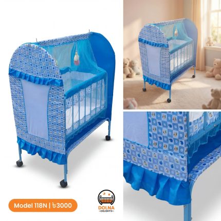 Cool Baby 118 ♦মেটারিয়াল = এম এস পাইপ ♦চাকা ৪টা (২টা লক +২ টা লক ছাড়া) ♦ বেবিদের সুরক্ষার জন্য মশারী দেওয়া হবে। ♦২ টা ঝুলন্ত খেলনা পুতুল হবে ♦কাপড় গুছিয়ে রাখার সেল্ফ হবে। ♦ডাবল মশারী বচ্চাকে দিবে অধিক নিরাপত্তা। ♦৩৫ কেজি + ওজন ধারন করতে পারবে। ♦০- ৩ বছর ব্যবহার করা যাবে ♦সাইজ ৩ফুট/৪ ফুট ♦খাচার সাইজ ২৪ / ৩০ ইঞ্চি ♦খাচা কিভাবে তৈরী-চারো সাইটে পাইপ দেয়া,নিচেও তিনটি পাইপ দেয়া থাকবে +ভিতরে হার্ডবোর্ড দেওয়া বাবু শোয়ার জন্য।                                                                                                                          কালার হবে দুইটা গোলাপি রঙের এবং নীল রঙের.